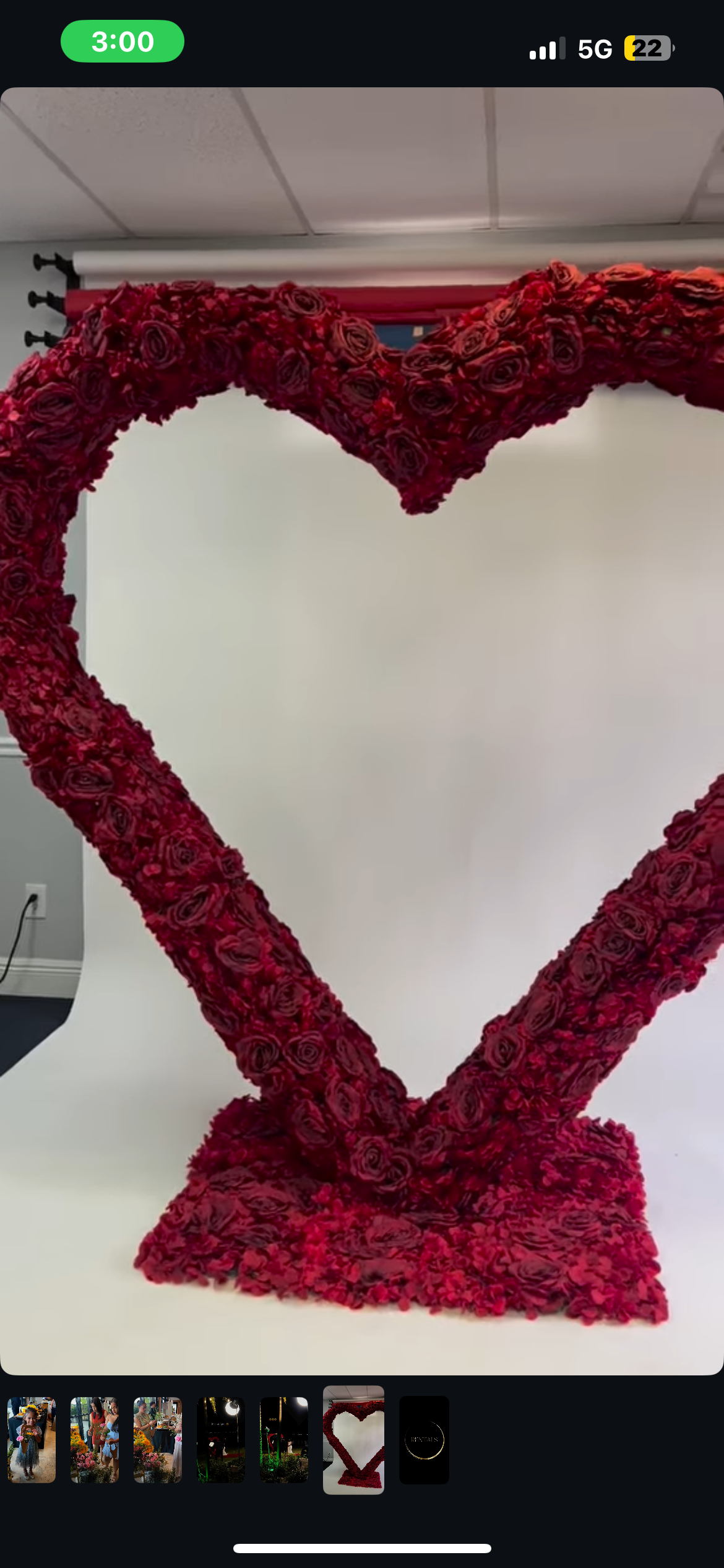 A 7-foot floral heart installation designed as a stunning photo-ready backdrop. Ideal for:
