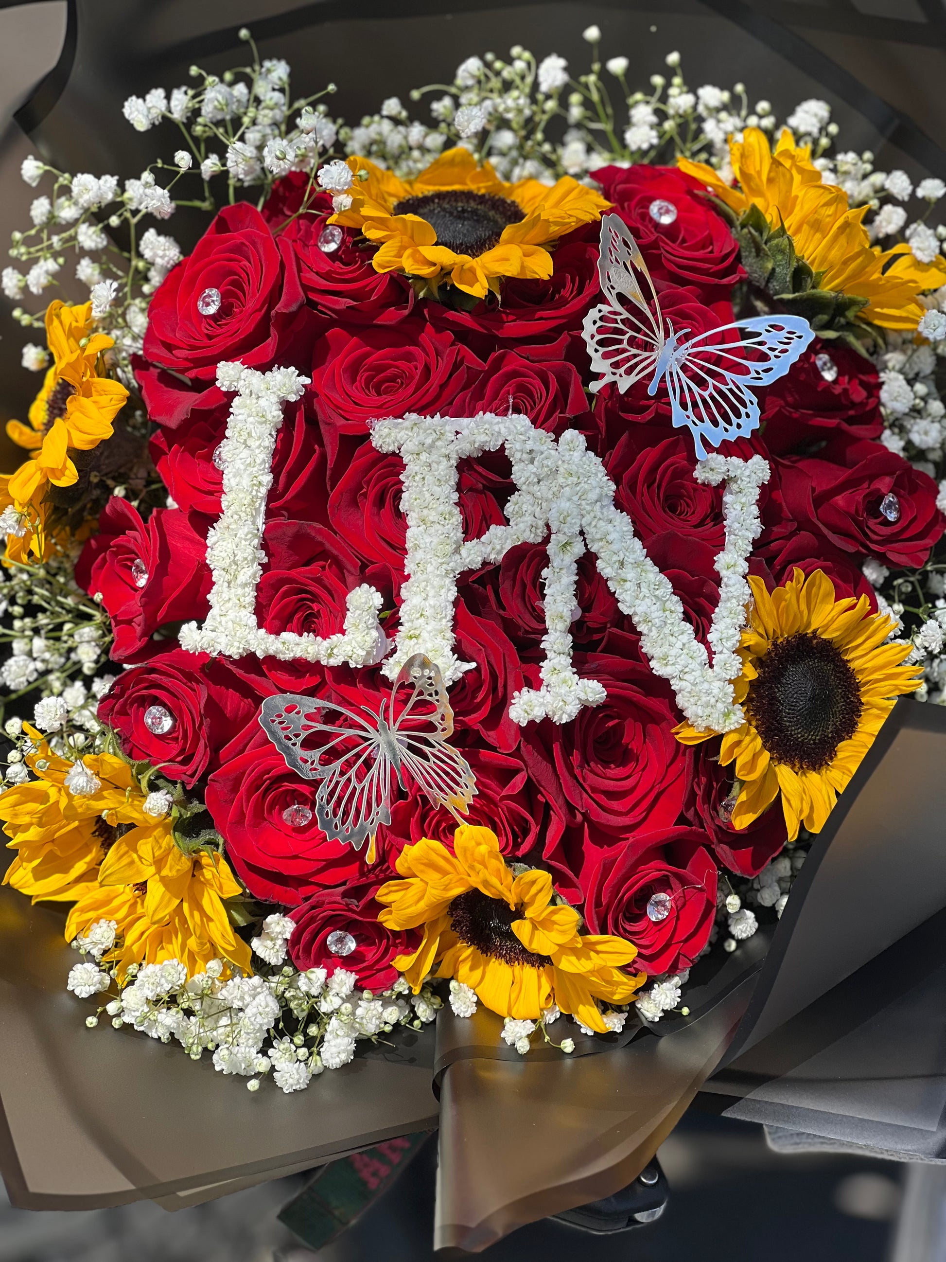 Diamond pins are automatically added to all bouquets and arrangements not featuring a decorative topper, ensuring every piece has that perfect finishing touch.